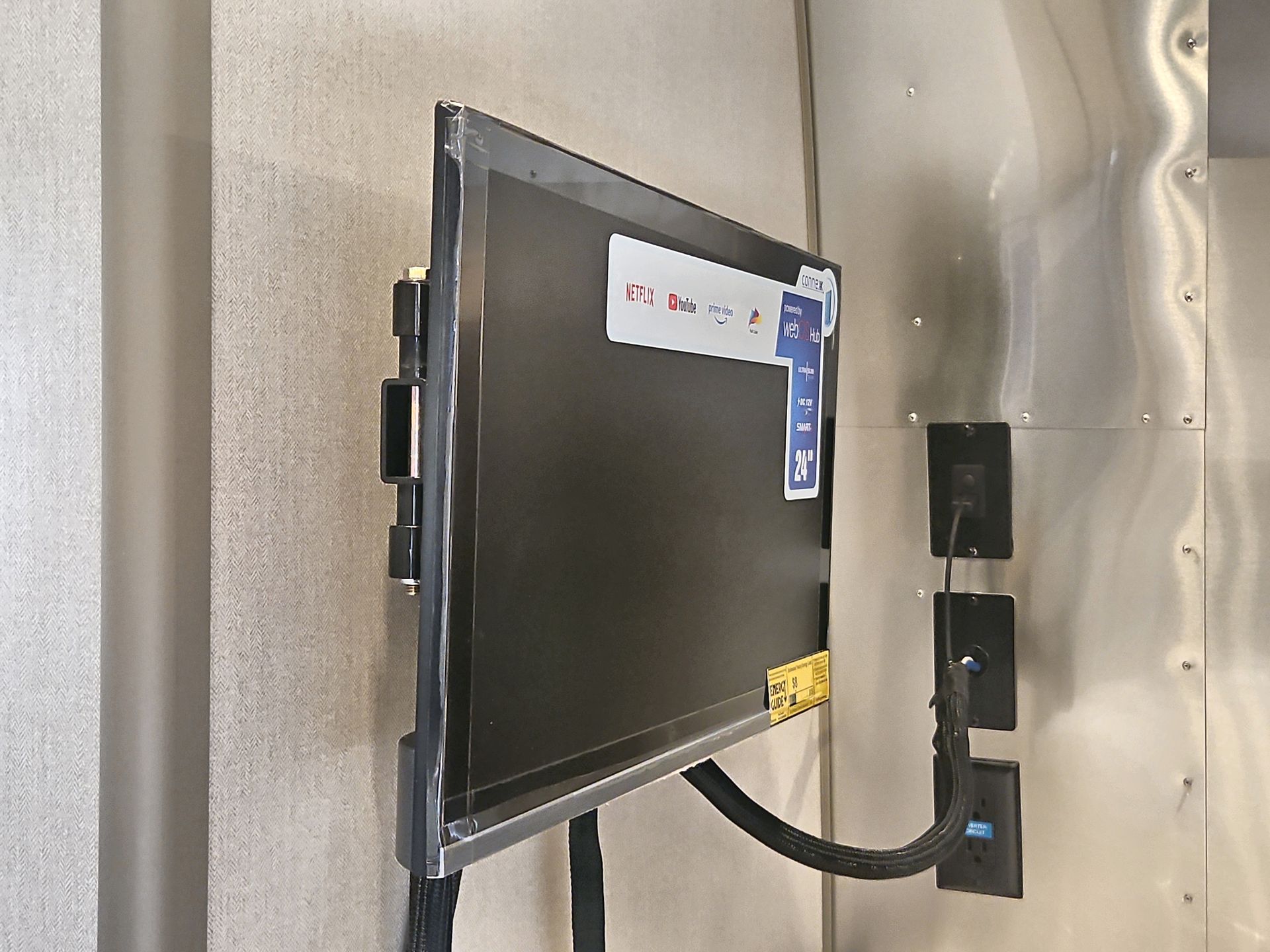 The exterior showcases Airstream's iconic aluminum shell, polished to a mirror-like finish that is both durable and aerodynamic. This design not only enhances fuel efficiency but also ensures longevity, allowing the Caravel 16RB to withstand various travel conditions. Equipped with a manual Zip Dee® patio awning made from Sunbrella® fabric, it provides a comfortable outdoor space for relaxation. Additional exterior features include an exterior shower with hot and cold water, stainless steel front stone guard protection, and a rearview monitoring system for added safety.