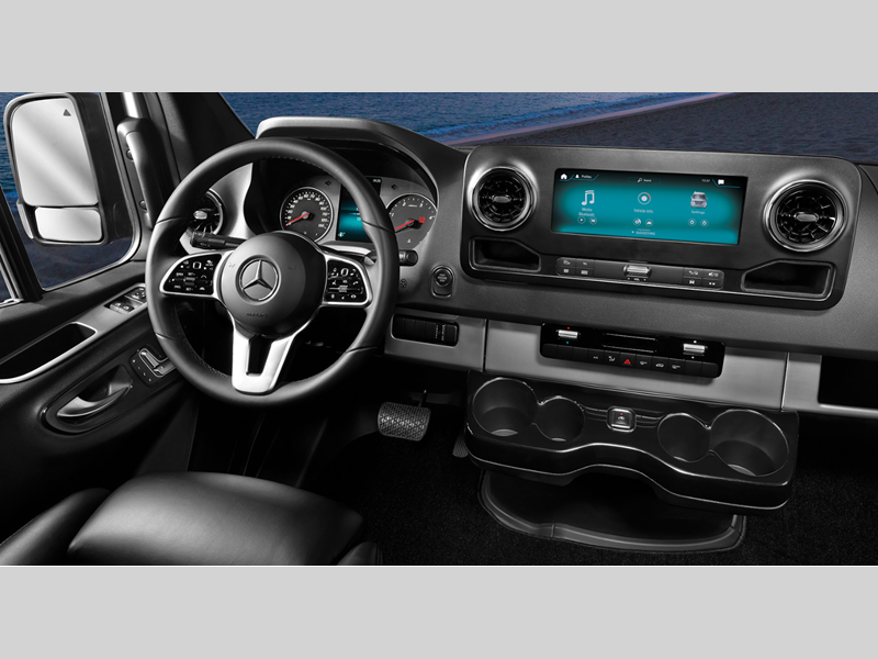 It all starts with a Mercedes-Benz Sprinter 2500 van chassis with a 2.0L 4-Cylinder high output diesel engine to power your adventures. The power sofa and side seats create the largest bed in its class, and the multiplex controls put you in control of the coach's functions with the push of a button. A spacious, versatile wet bath comes standard, along with a Corian kitchen countertop, Ultraleather seating, matte finish laminate cabinetry, and many more luxurious features.