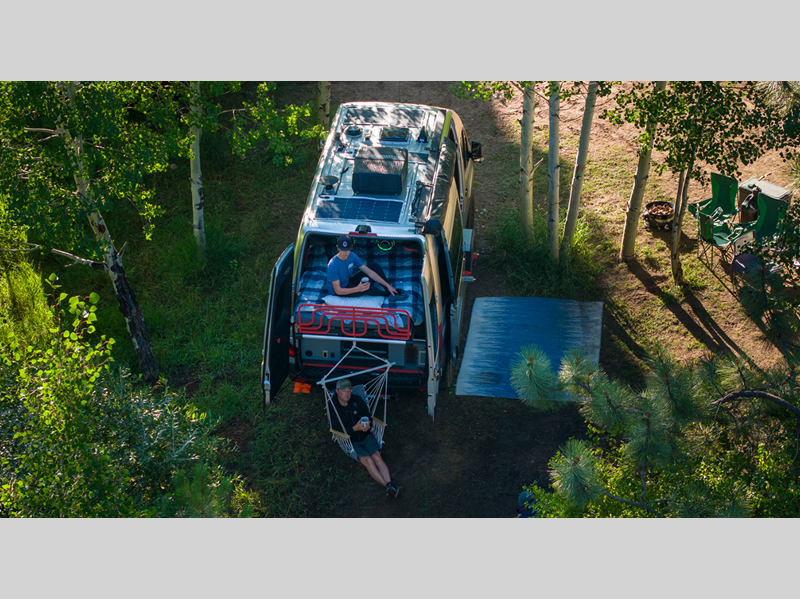 You will also appreciate having fully adjustable shocks and capable LED lighting to help light the way on back roads. The versatile bed system can slide out the back doors, or you can remove the bed to make more storage for bikes, hiking gear and more! There is ample storage space throughout, including an L-track system, cabinets, and overhead lockers. With a stowable induction cooktop, you can cook indoors or outdoors, plus the refrigerator is accessible from inside or out!