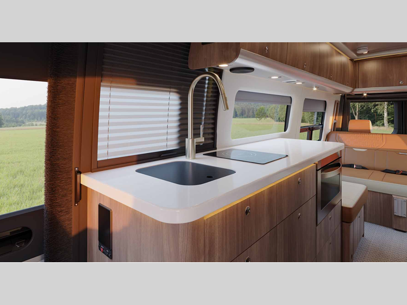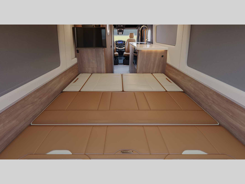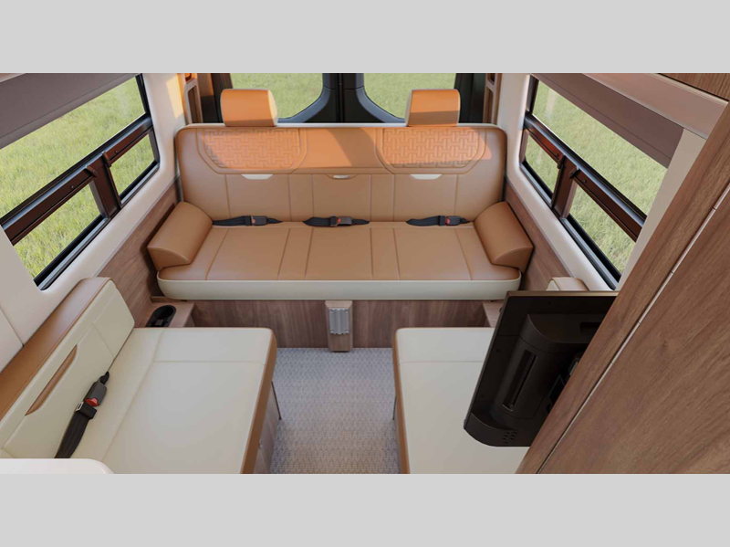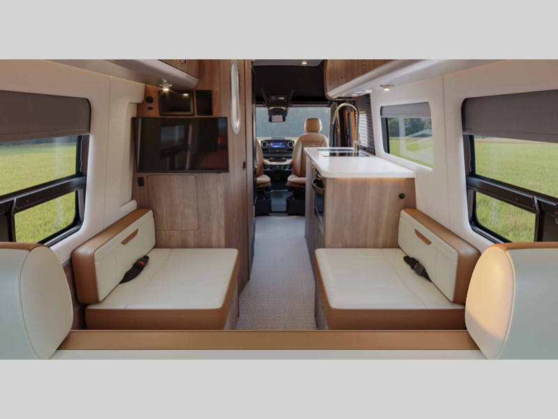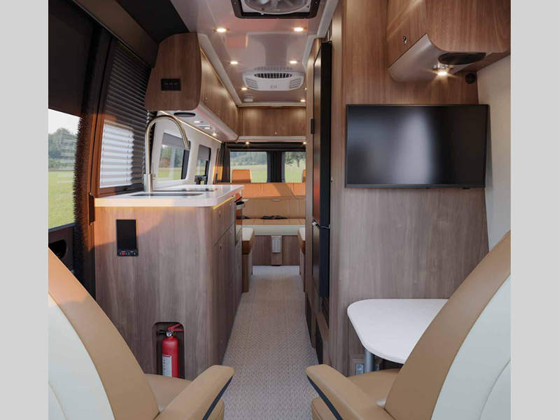 Sleeps 2 Length 24 ft 9 in Ext Width 7 ft 9 in Ext Height 9 ft 9 in Int Height 6 ft 2 in Interior Color Amber Ridge, Classic Canyon, Modern Greige Exterior Color Hightech Silver, Tenorite Grey Hitch Weight 5000 lbs GVWR 11030 lbs Dry Weight 9423 lbs Cargo Capacity 1708 lbs Fresh Water Capacity 23 gals Grey Water Capacity 24 gals Black Water Capacity 11 gals Fuel Type Diesel Engine 2.0L Turbo Charged 4-Cylinder High Output Chassis Mercedes-Benz Sprinter 3500 Extended Horsepower 208 hp Fuel Capacity 24.5 gals Wheelbase 170 in Torque 332 ft-lb Refrigerator Type 12V Refrigerator Size 6.6 cu ft Cooktop Burners 1 Number of Awnings 1 Water Heater Type Diesel Fired Hydronic AC BTU 13500 btu TV Info Two LED Smart HDTVs Awning Info Power Armless w/Auto-Retract and LED Lighting Gross Combined Weight 15250 lbs Shower Type Wet/Bath Shower Electrical Service 30 amp Solar Wattage 400 watts
